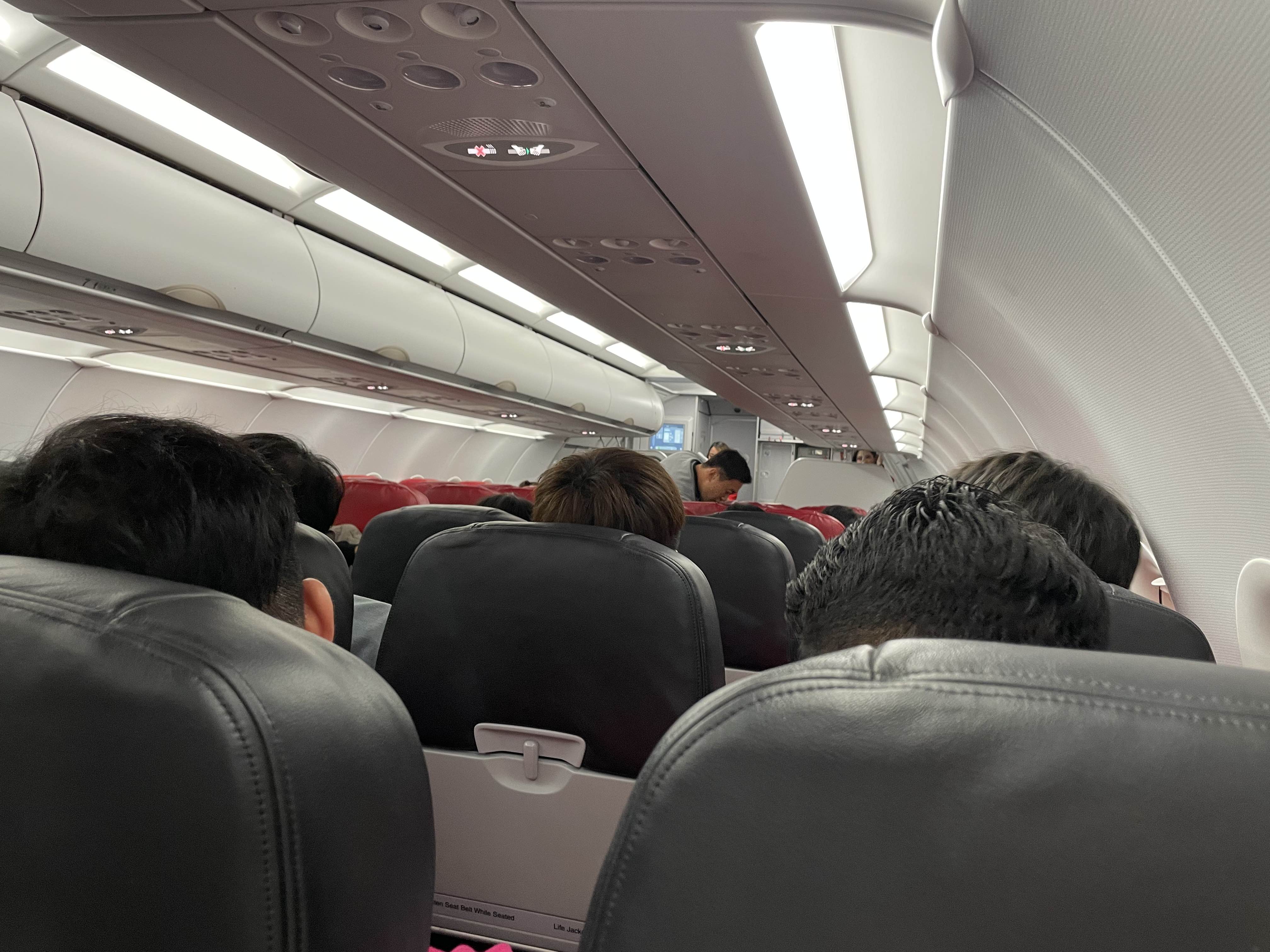 이번에는 처음 좌석에 앉았는데, 앞좌석이 왜 이리 가까운지 무슨 관짝에 들어온 것 같아서 출발하기도 전부터 숨이 턱 막히는 듯했다. 비행시간 4시간 30분이면 껌이다 생각했었는데, 막상 비행기 타니까 언제 갈까 싶은 생각이... '3열·3열'인 비행기였는데, 빈자리가 있기를 살짝 바라봤지만 빈자리가 정말 하나도 없이 가득가득 찼다. 와우