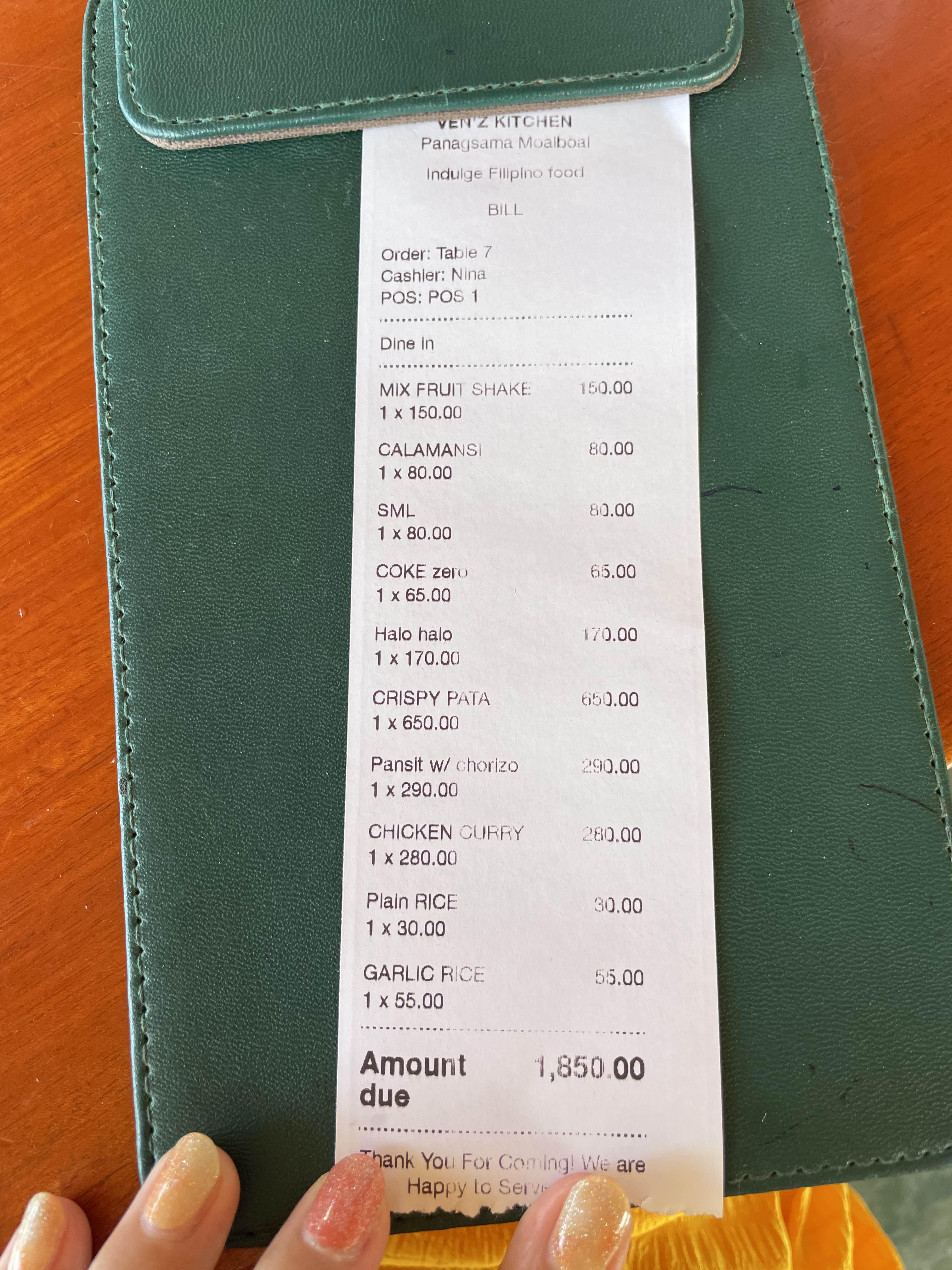 모알보알에 오고 이튿날 오전에 한차례 스노쿨링을 하고 나서 점심을 먹으러 파낙사마 로드로 나왔다. 물놀이하고 나서 아주 배고픈 상태로 찾은 곳은 '레촌'이 맛있다고 들었던 'Ven'z Kitchen 벤즈 키친'. 결과적으로 레촌을 먹으러 갔지만 다른 것만 먹고 와버렸다ㅋㅋㅋ 열심히 알아보고 갔지만, 다른 것만 먹고 온 벤즈 키친 리뷰 시작..!!
