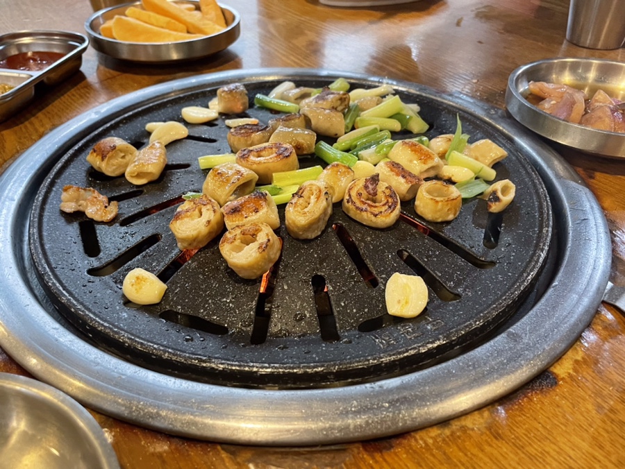 삼겹살이 제일 괜찮았고 대패는 기름기가 너무 없어서 뻣뻣한 편이었다. 또 막창 자체는 괜찮았는데 소스가 아쉽. 막창은 소스 맛으로 먹는 것이기도 해서 아쉬운 부분이었다.