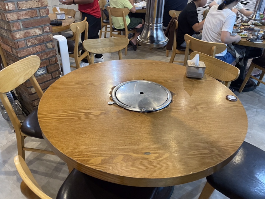 가운데 불판이 있는 원 테이블에 자리를 잡았다.